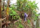 Bà Mạnh Thị Trang, ở xã An Lĩnh trồng 2ha chuối “canh” bán dịp tết, bão số 5 vừa qua làm ngã đổ 2/3 vườn chuối. Sau bão vợ chồng bà Trang ra sức “chống gậy” chuối bằng cách dùng cây có nạng chống đỡ cho chuối đứng vững.