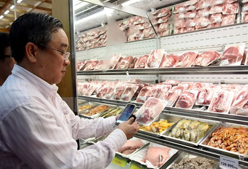 Người tiêu dùng mua thịt tại siêu thị. (Ảnh: Thanh Vũ/TTXVN)
