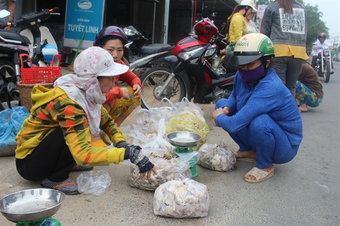 Ông Trần Văn Long, rảo “chợ” nấm mối ở đây cho hay: Nấm mối ở Sơn Hòa xuất hiện trên facebook, con tôi ở trong Sài Gòn điện về bảo mua gởi vô. Năm nay không chỉ nấm nhiều, cây nấm to, cân 5 tai nặng nửa ký. Nấm mối ở Sơn Hòa “ăn” vô tận Đồng Nai, Bình Dương, TPHCM. Nấm mối quý hiếm, thường các gia đình ở đây đi nhổ hoặc mua về nấu chín để trong ngăn đá tủ lạnh rồi bảo quản gởi đi xa.